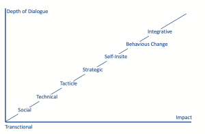 While these are not seven steps to mentoring heaven, they do represent increasing depth of reflection on the part of the mentee and a corresponding need for skills on the part of the mentor. A single mentoring session might delve into several layers. In general, establishing dialogue at the social level assists dialogue at the technical level; technical dialogue can evolve into strategic – and so on up the ladder.